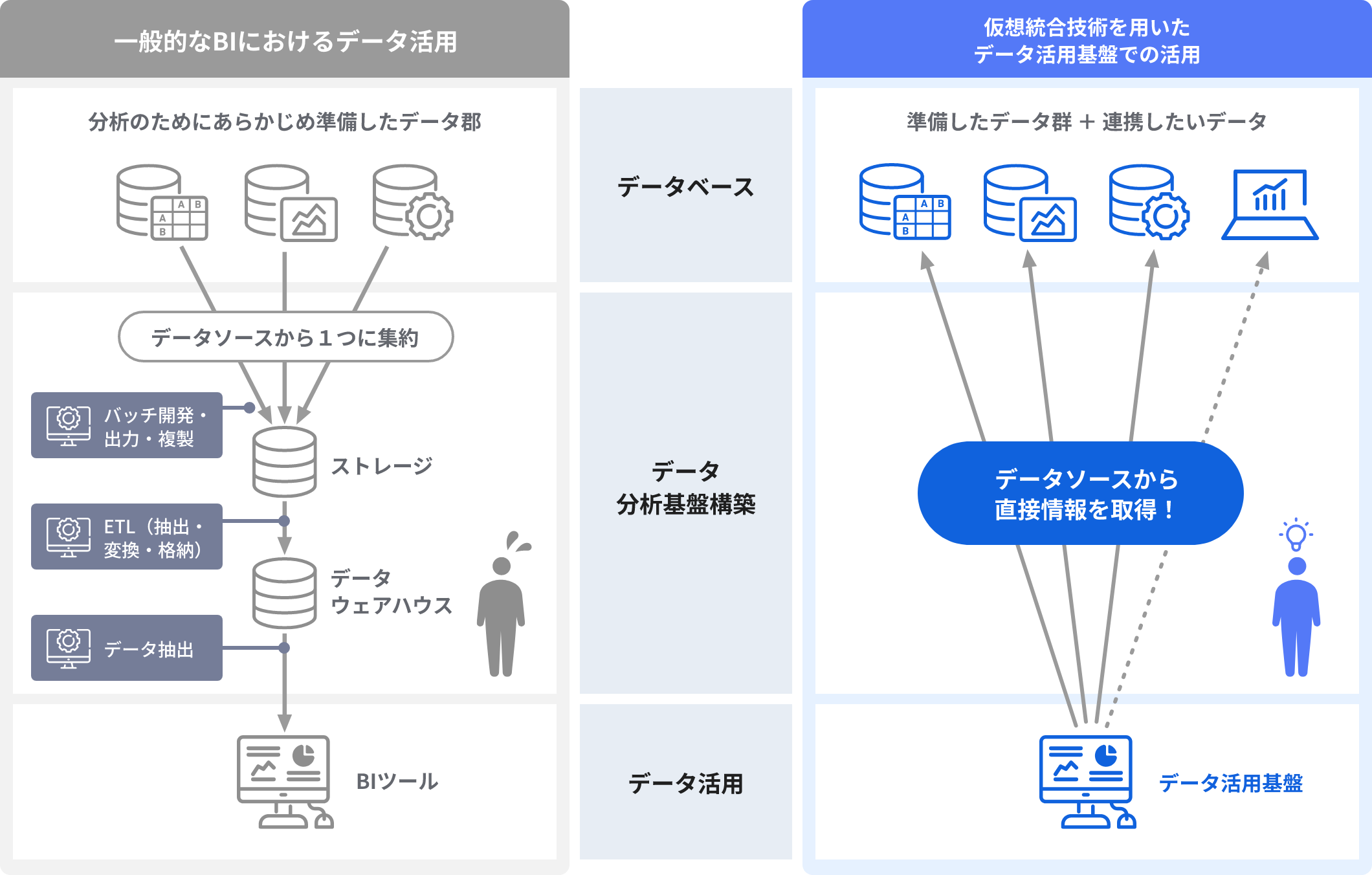 • 仮想的に統合できるため、分析の途中で追加したいデータを連携できます。